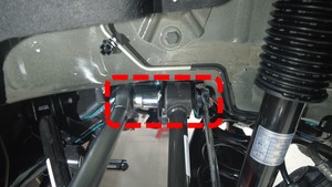 nuts that attach the LH rear drop link to the LH rear stabilizer bar and the