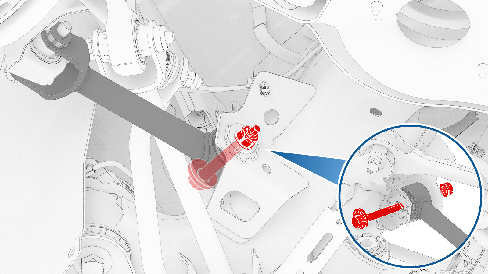 attaches the LH rear of subframe to the body, and then mark the bolt with a paint