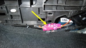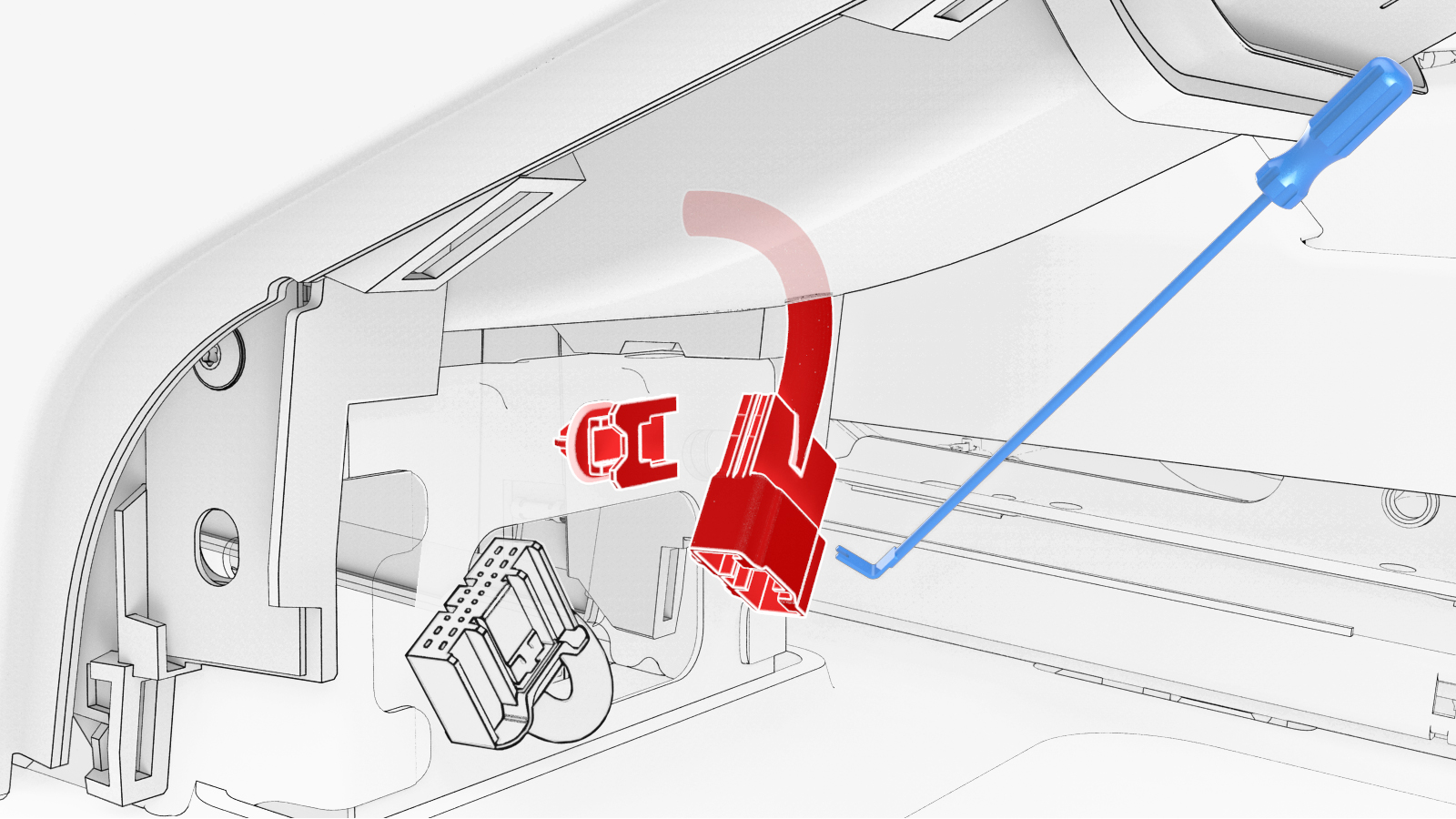 After disconnecting the electrical harness, release the clip that attaches the electrical connector to the center console with a clip prytool.