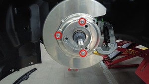 Bolts (x3) that attach the LH front brake dust shield to the knuckle |