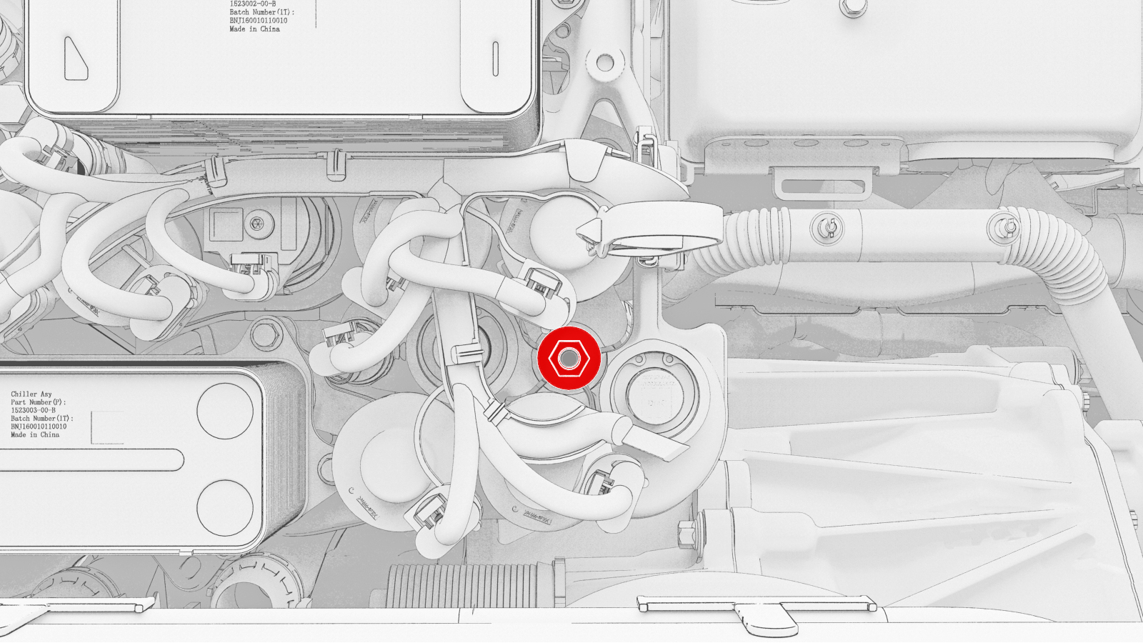 TIpLook through the supermanifold stud hole to help locate the A/C line stud.WarningThe video(s) included in this procedure are meant as an overview for supplemental purposes only. Follow all of the steps listed in the procedure to avoid damage to components and/or personal injury.