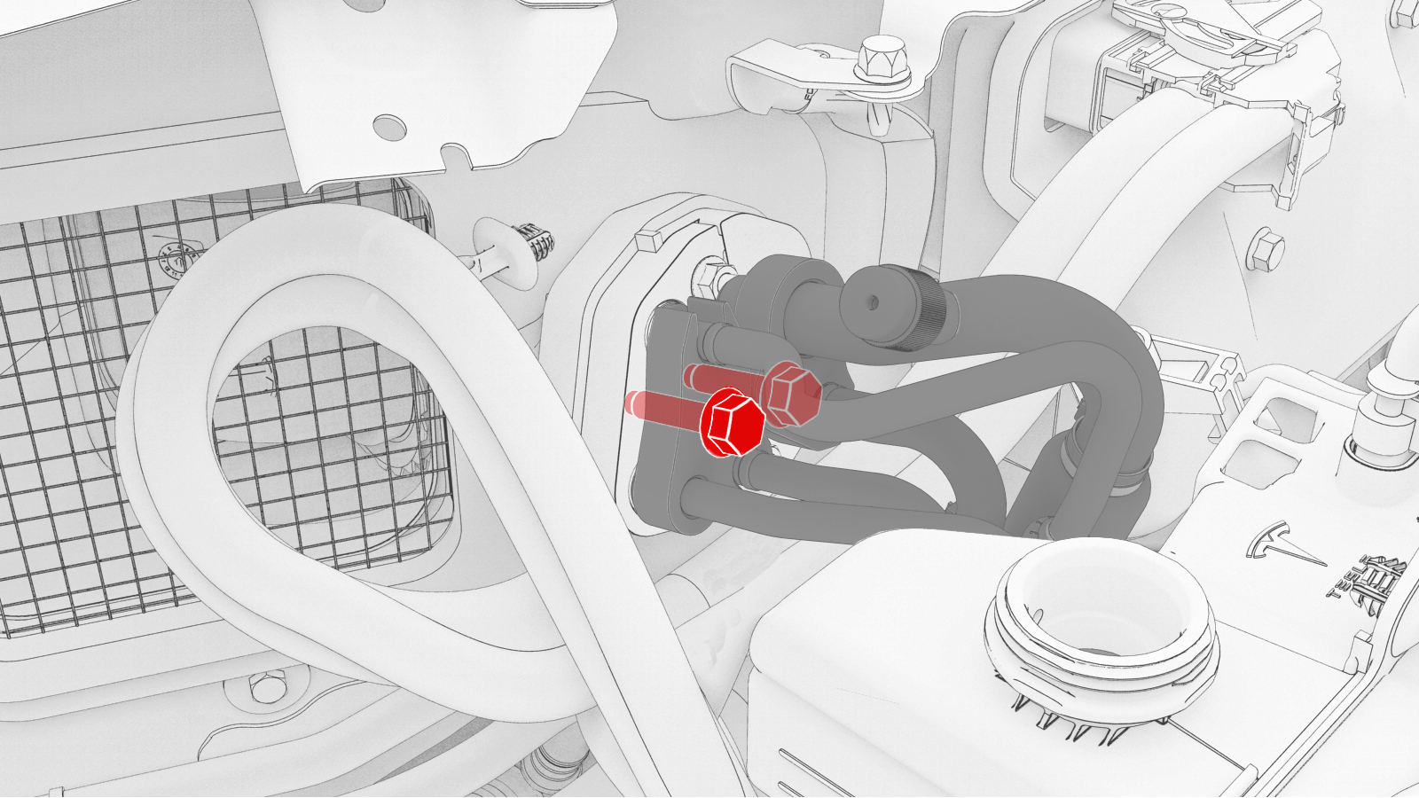 Bolts (x2) that attach the supermanifold to HVAC A/C line to the HVAC assembly |