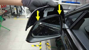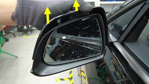 cap upwards to release the remaining tabs that attach it to the door mirror
