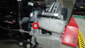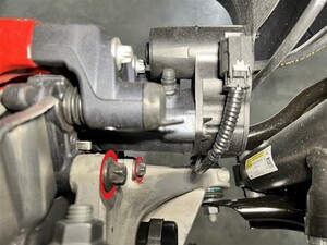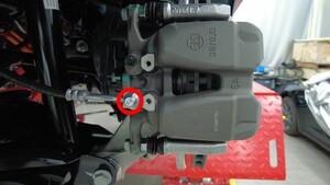 Bolt that attaches the RH rear EPB harness bracket to the LH rear caliper |