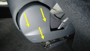- With the aid of a flashlight, maneuver the clips of the rear portion of the inboard side shield into position, then apply light pressure to the rear portion to secure it to the inner seat rail.