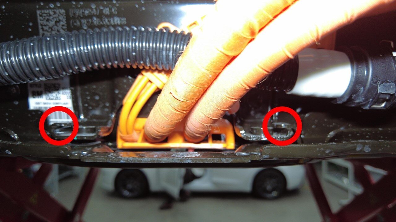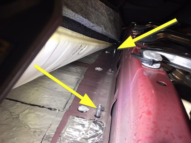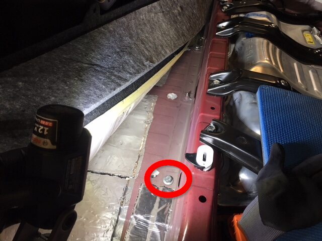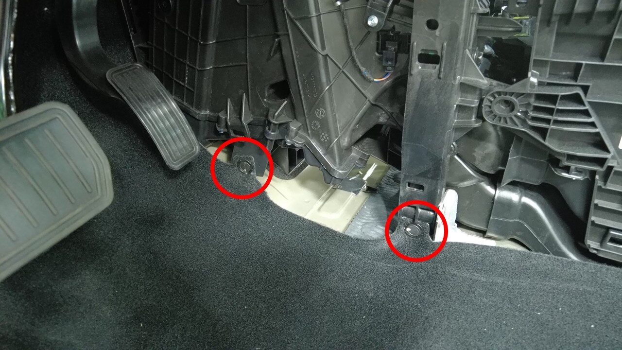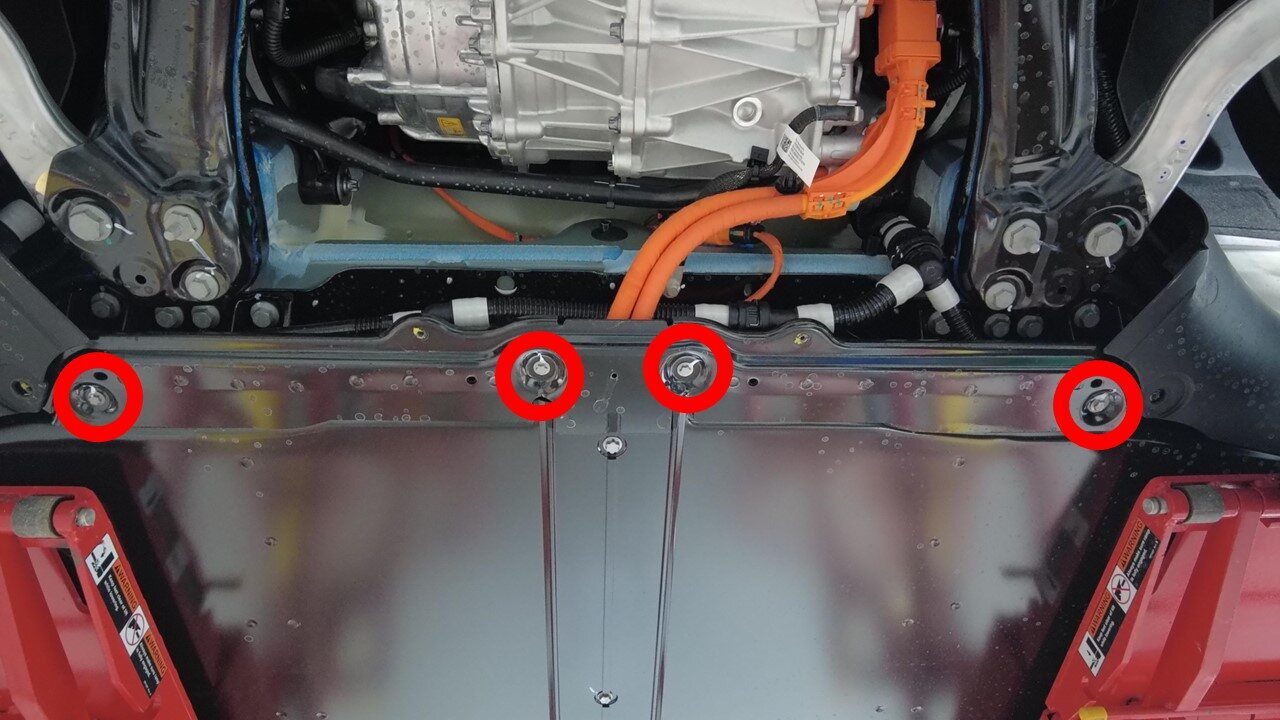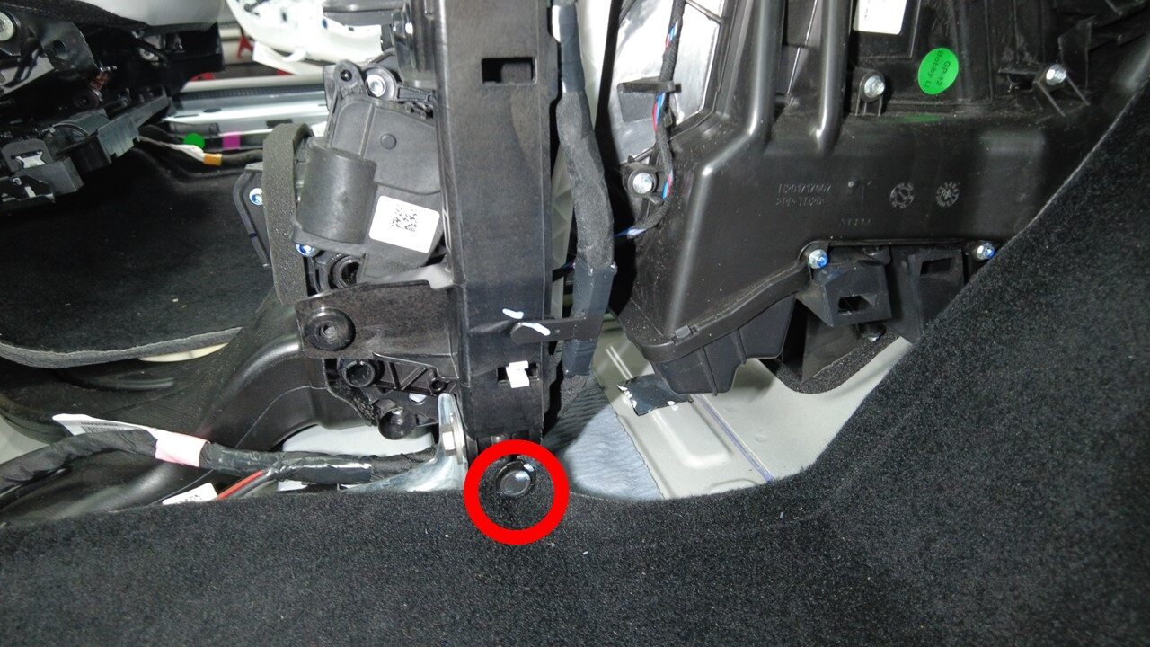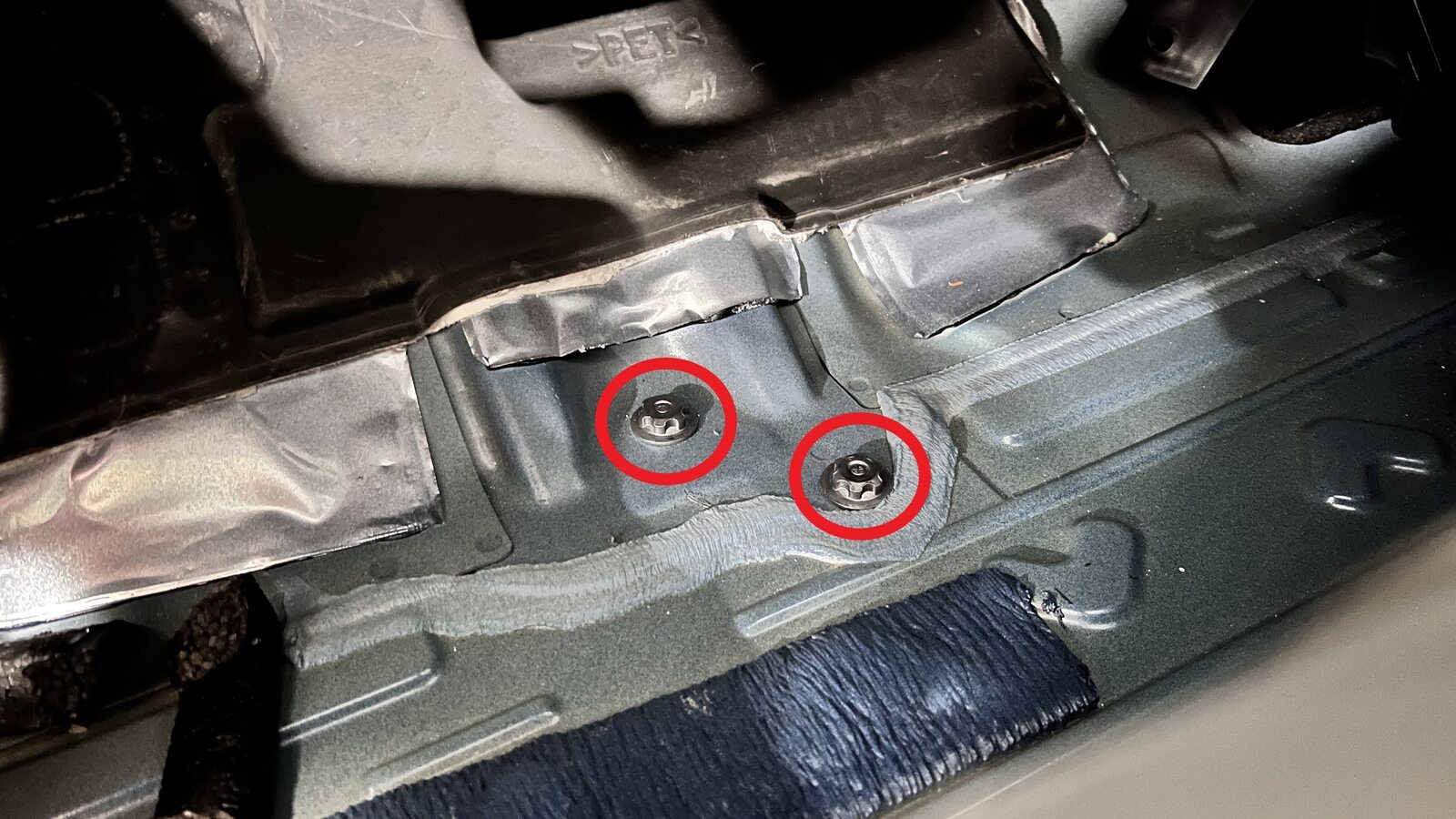 Note1x bolt, 16mm, 66 Nm, Lift up carpet for access.