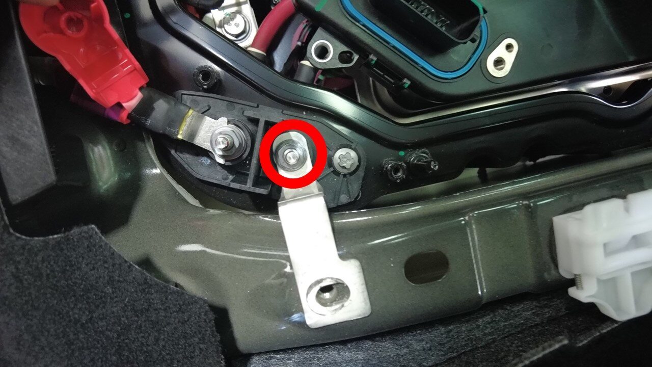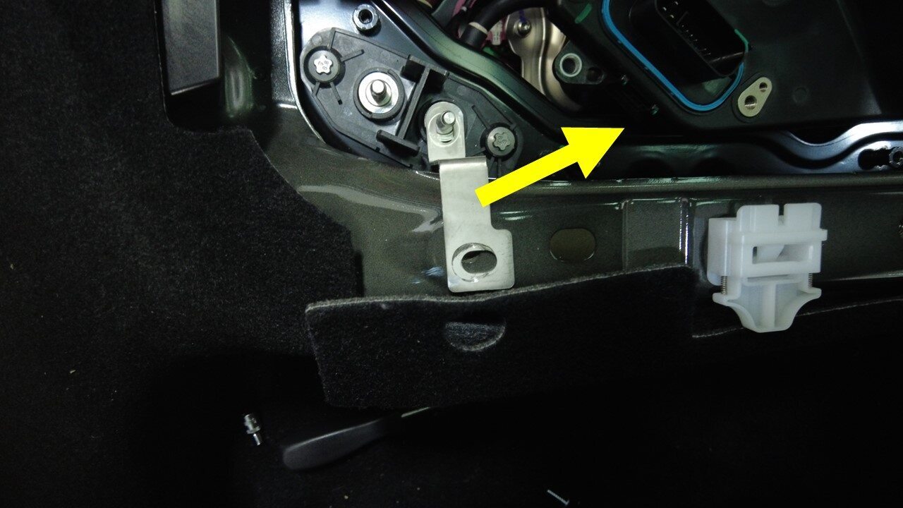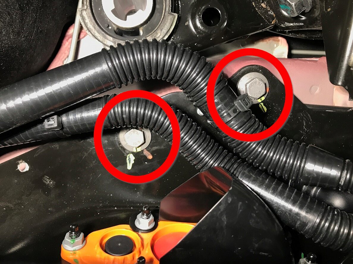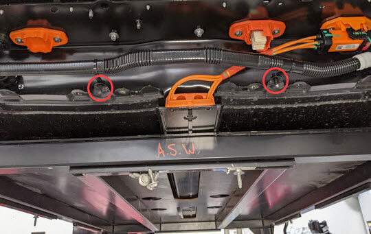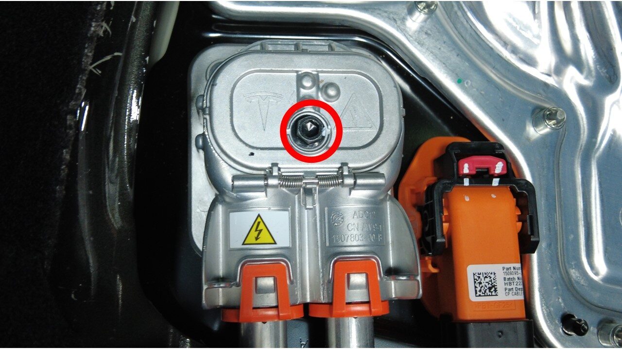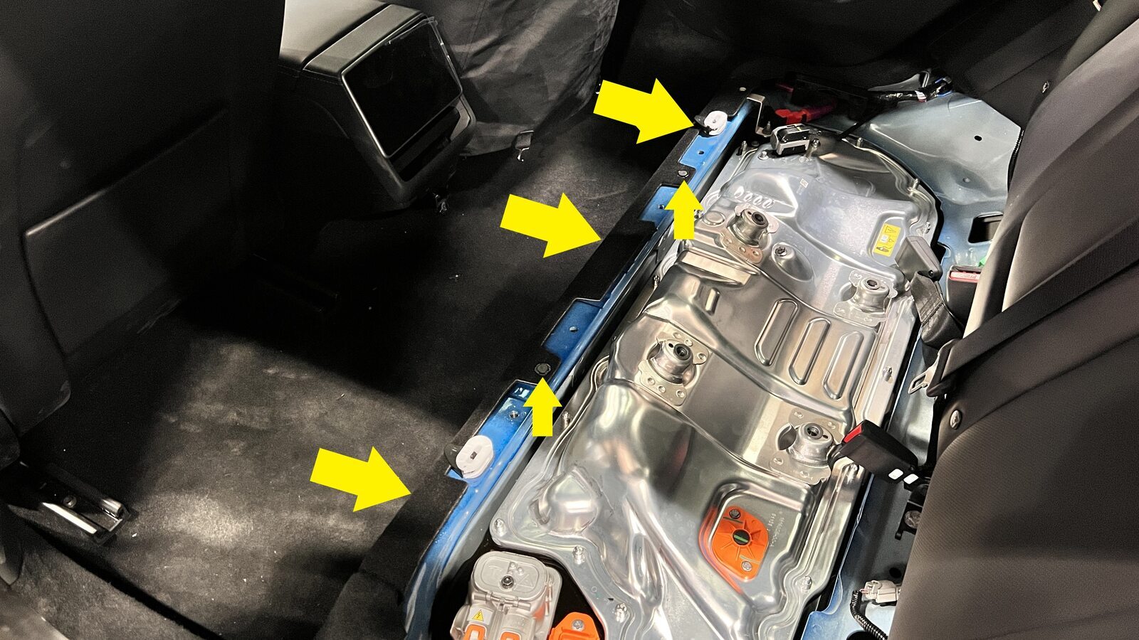 Note1x bolt, 16mm, 66 Nm, Lift up carpet for access.