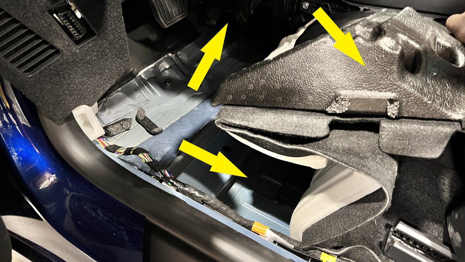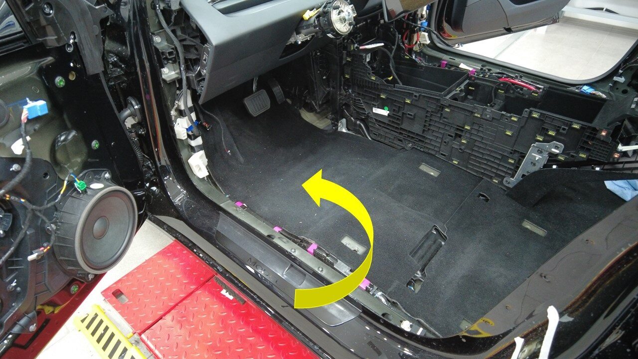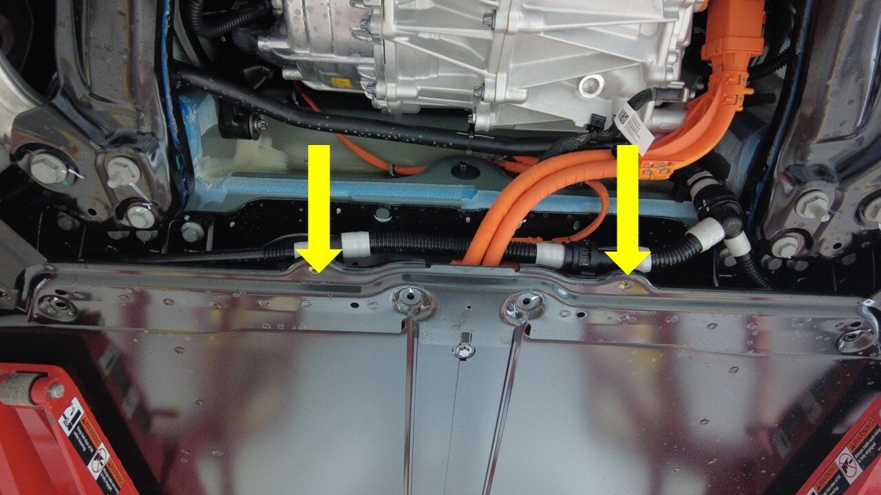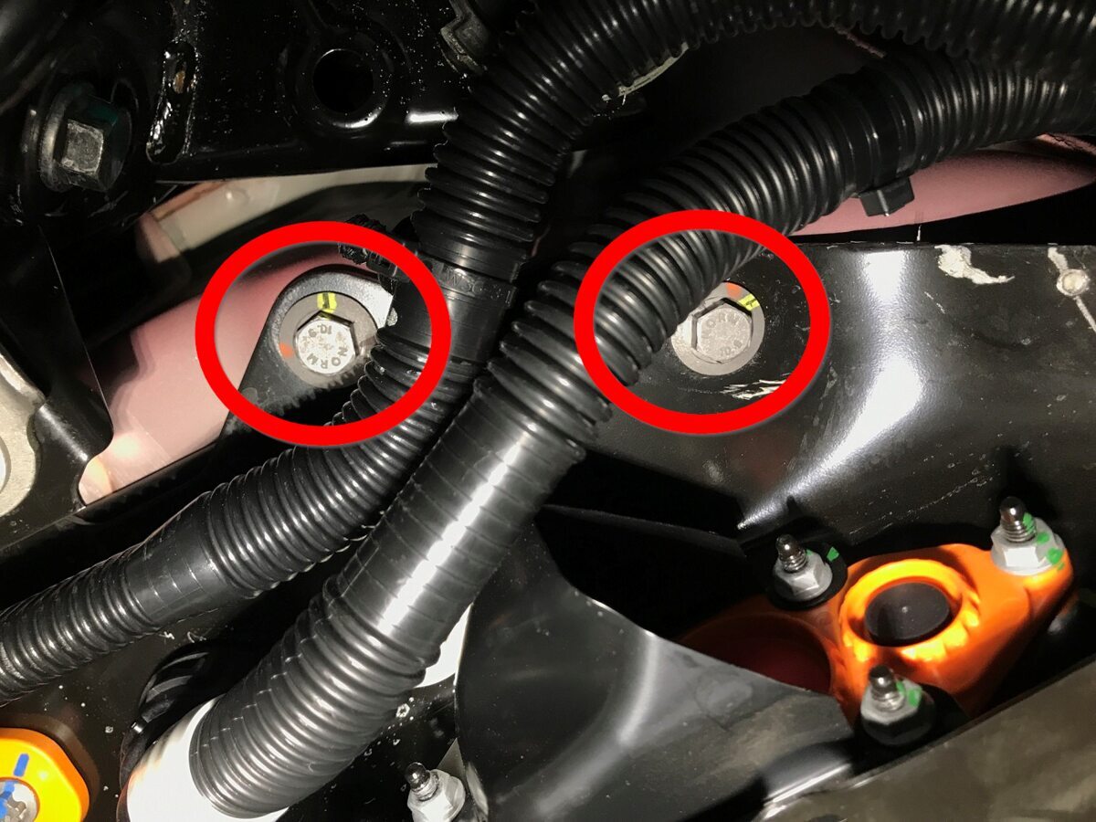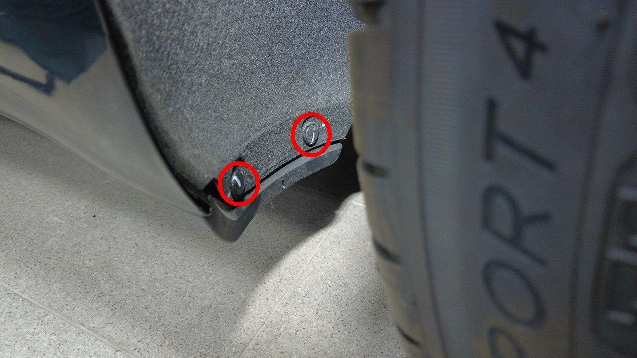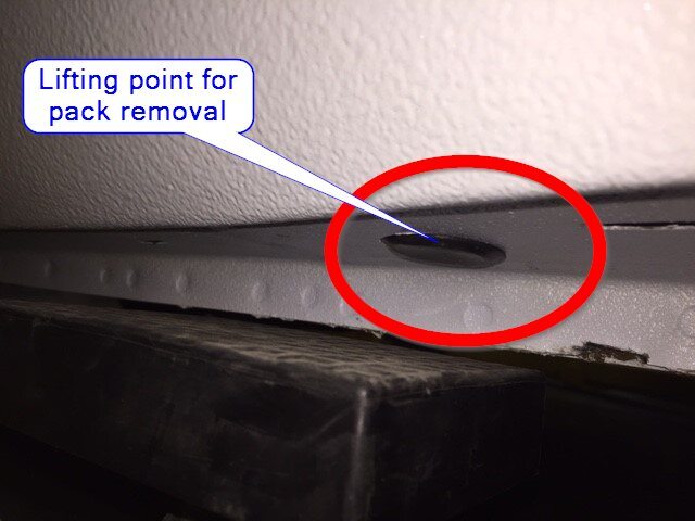 Note1x bolt, 16mm, 66 Nm, Lift up carpet for access.