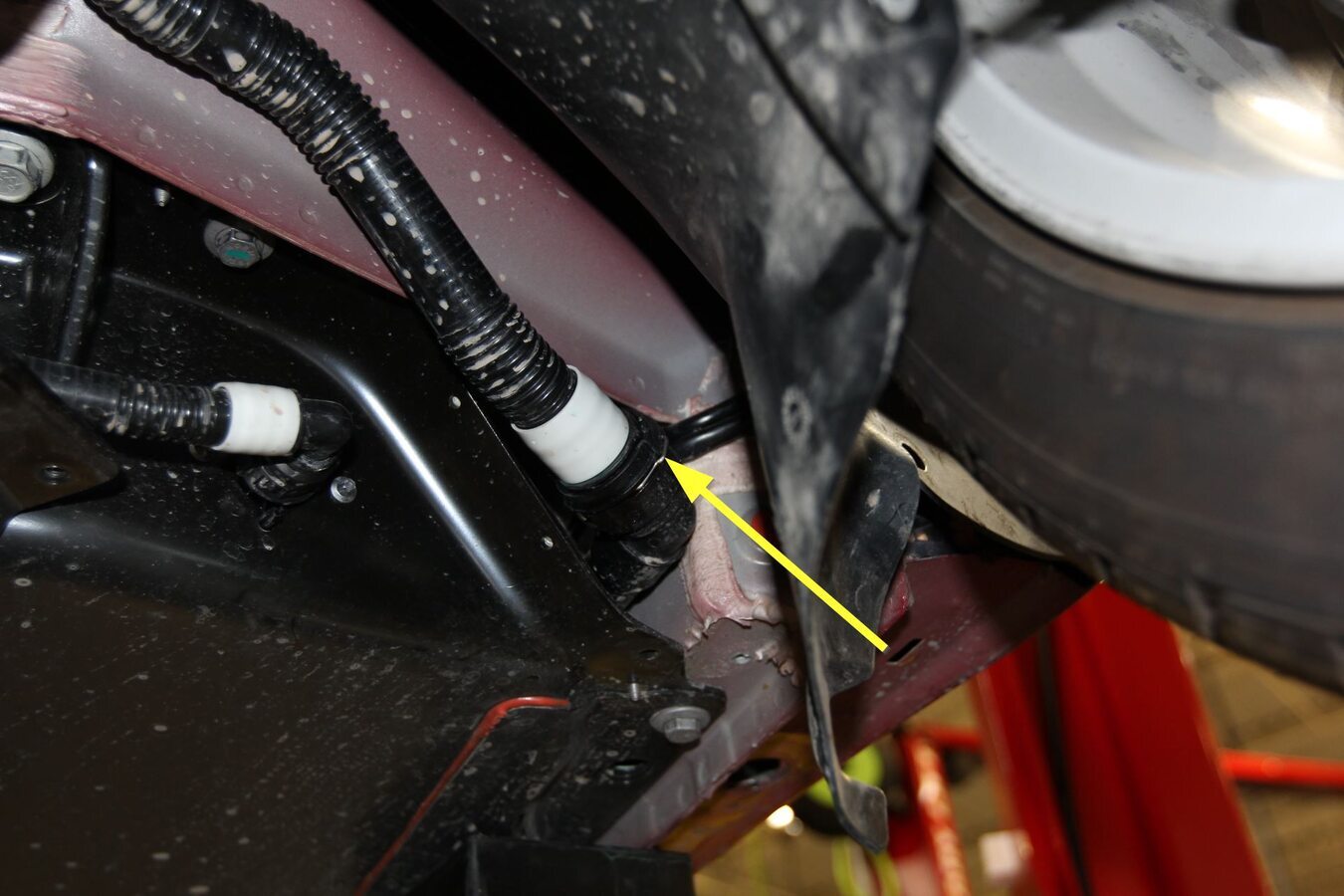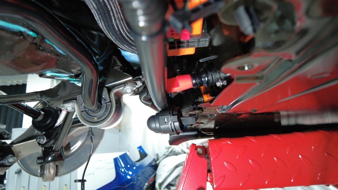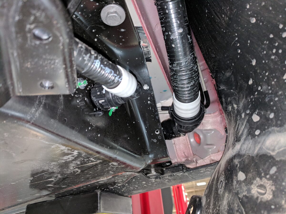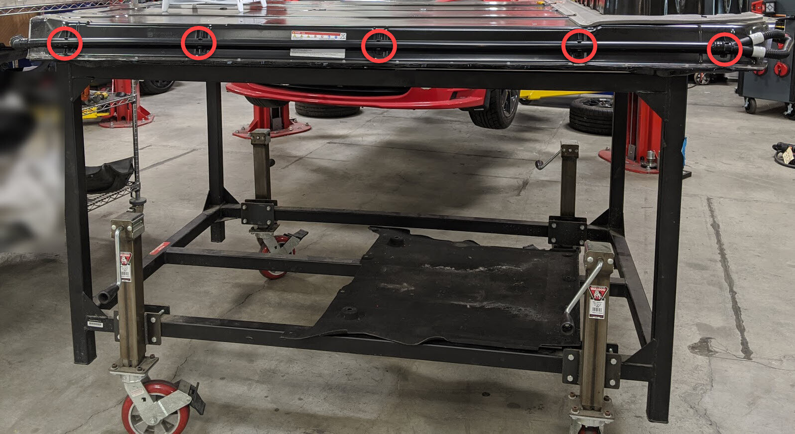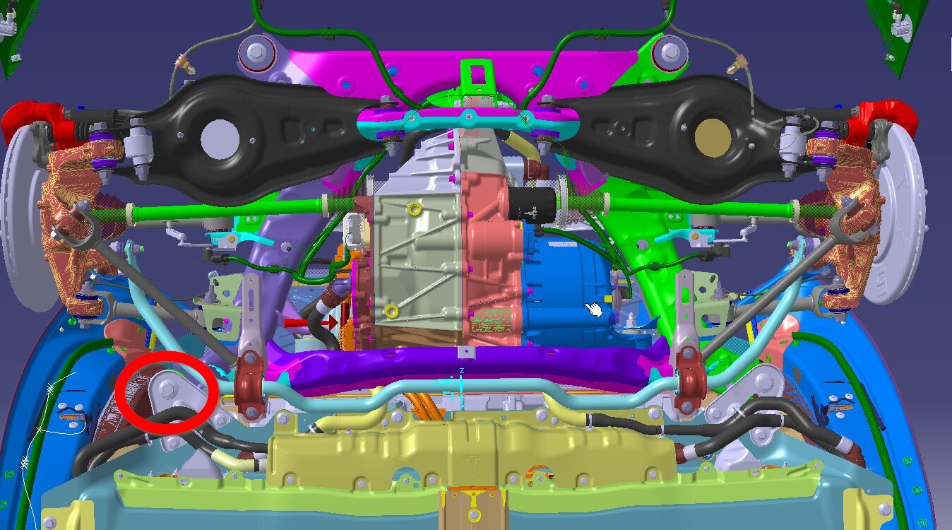 Note1x bolt, 16mm, 66 Nm, Lift up carpet for access.