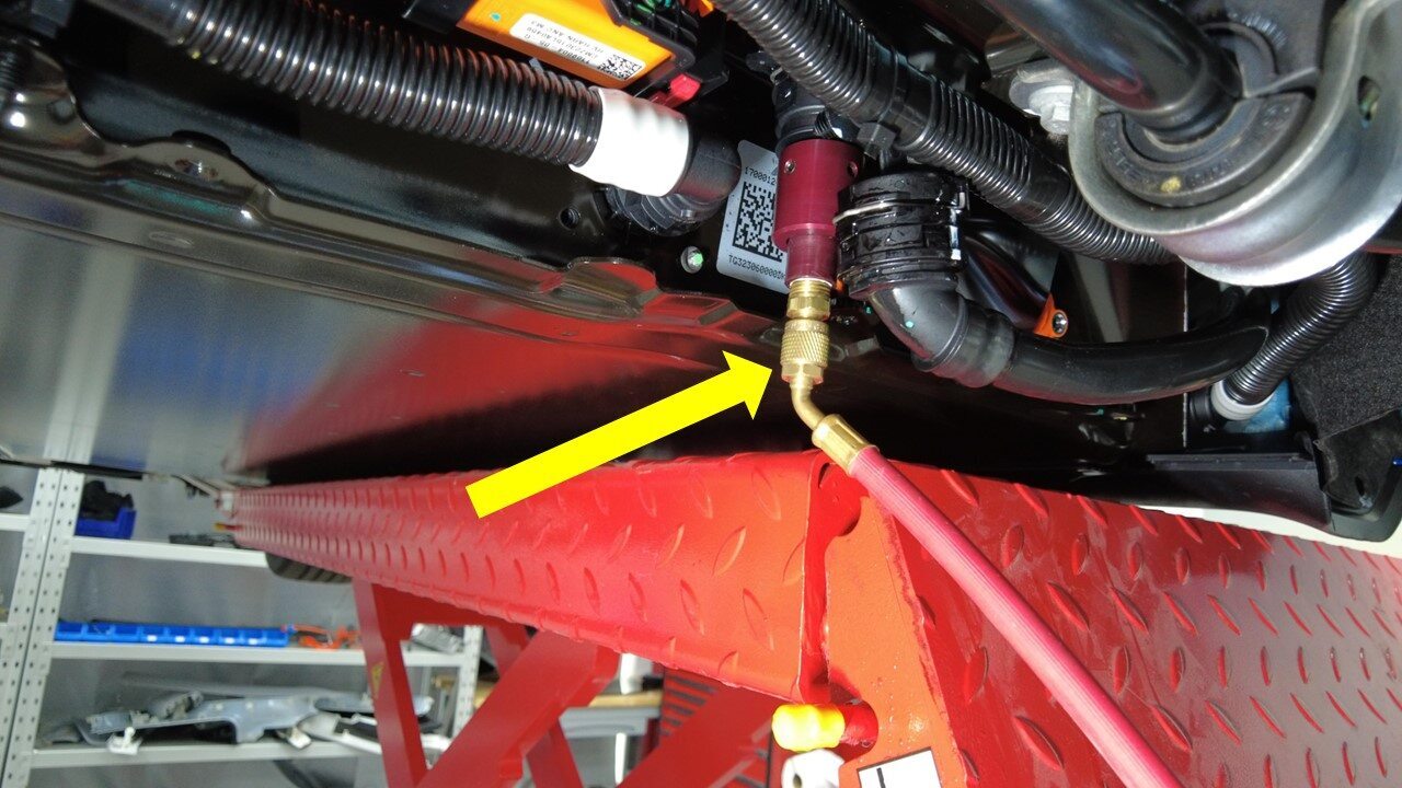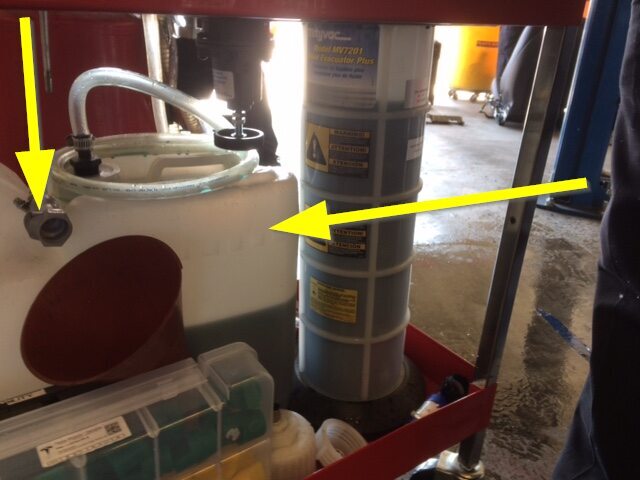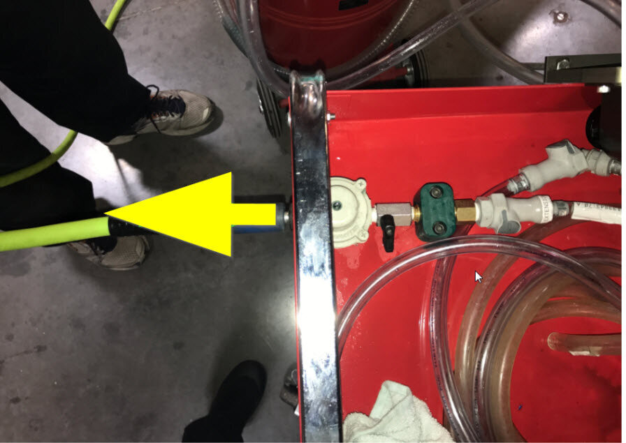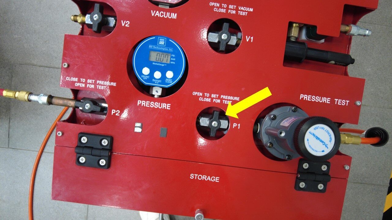 - Reopen the air inlet valve for 3 minutes to continue evacuating cooling system, then close valve.