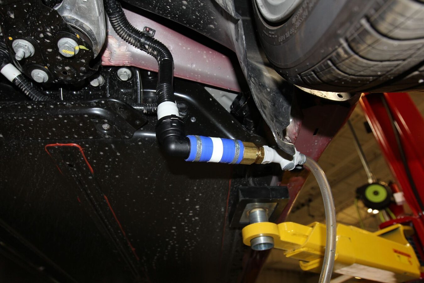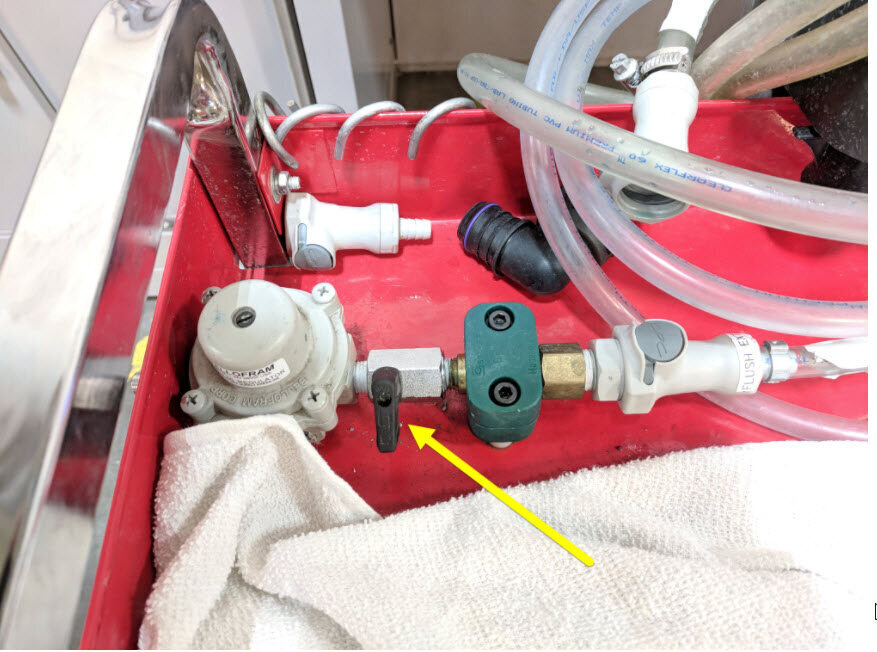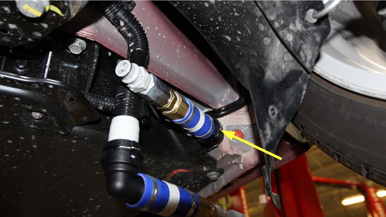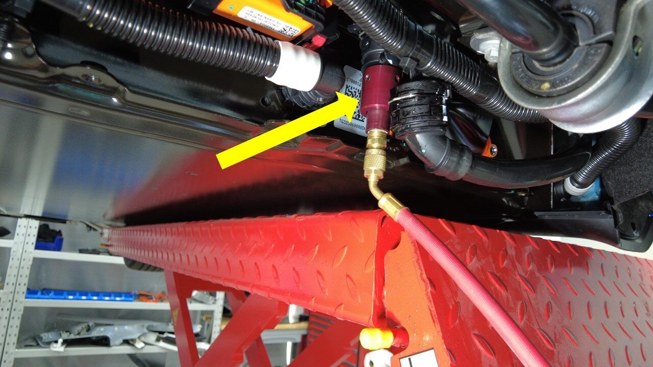 - Reopen the air inlet valve for 3 minutes to continue evacuating cooling system, then close valve.