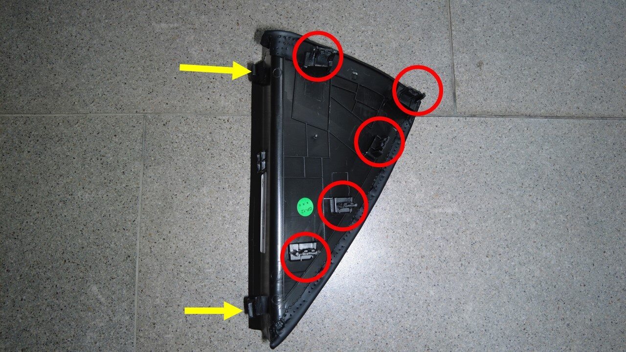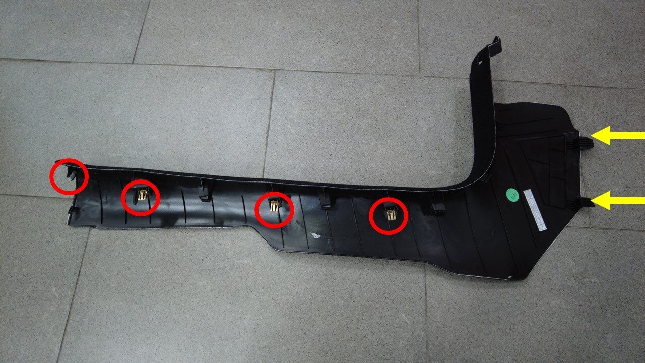 Note12x clips, 2x positioning clips, 1x datum, Use trim tool starting at rear edge to release upper clips, If the clip is too tight, Useprytool to remove the clips, Then pull bottom to release remaining clips, Finally, release the datum and pull out the side panel backward, Replace the clips if it is damaged.