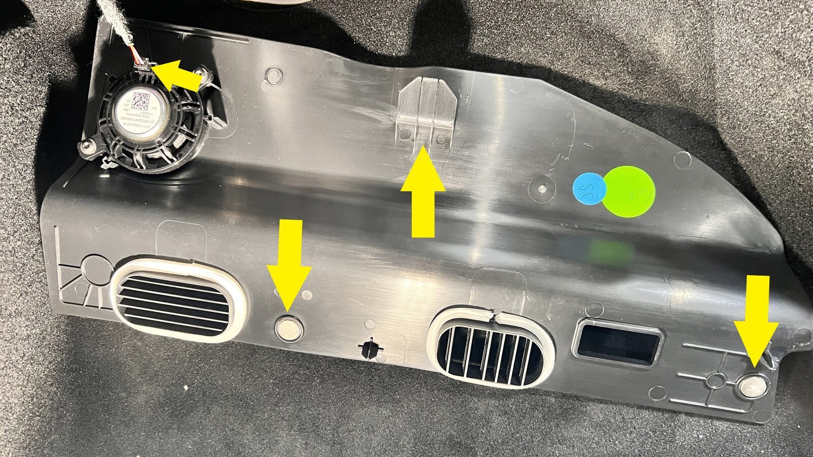 Note2x push clips, Tuck corners under lower C pillar trim.