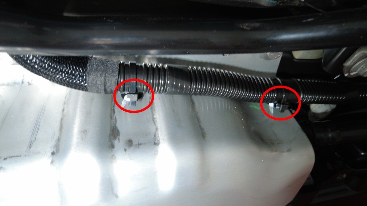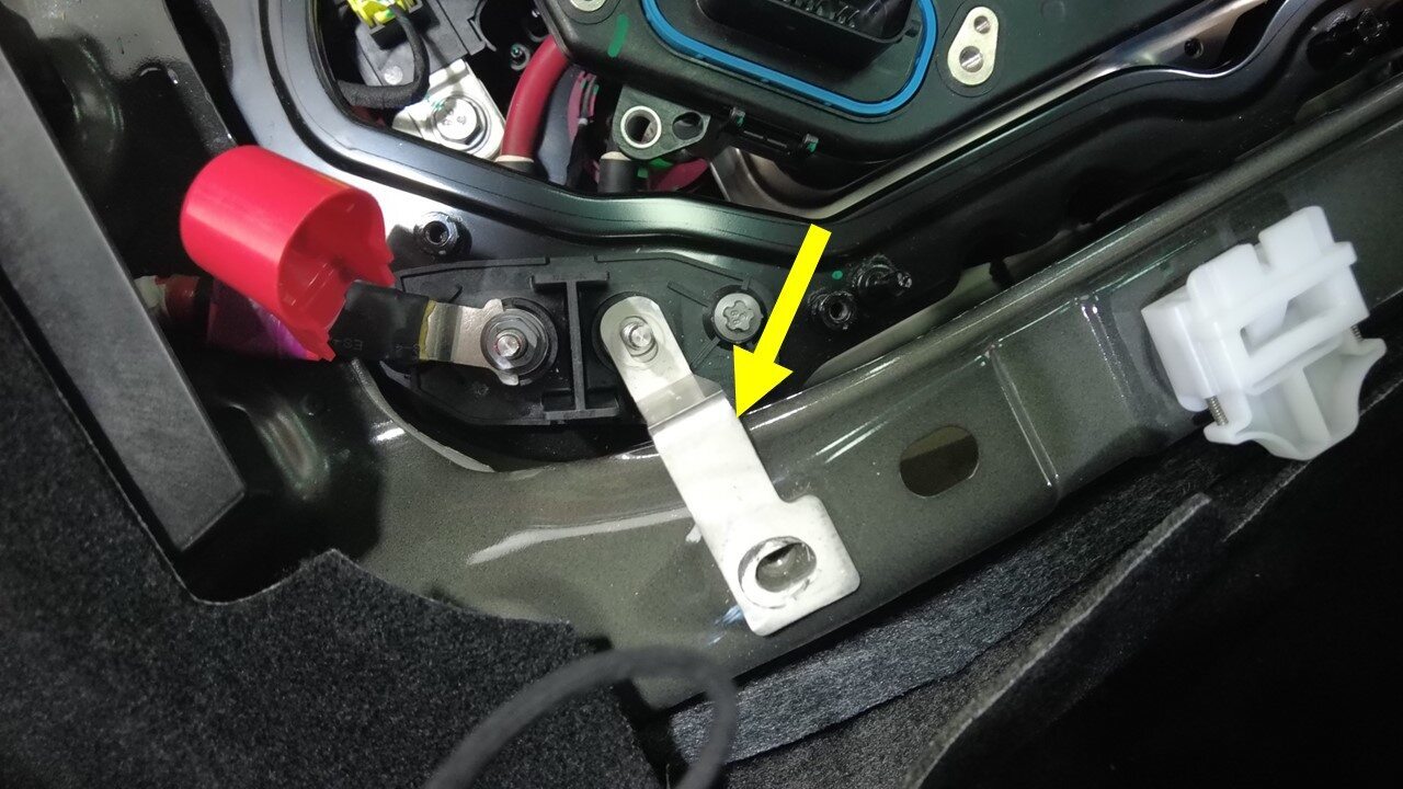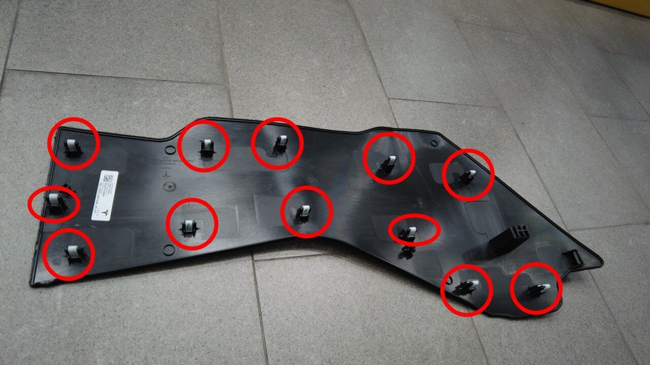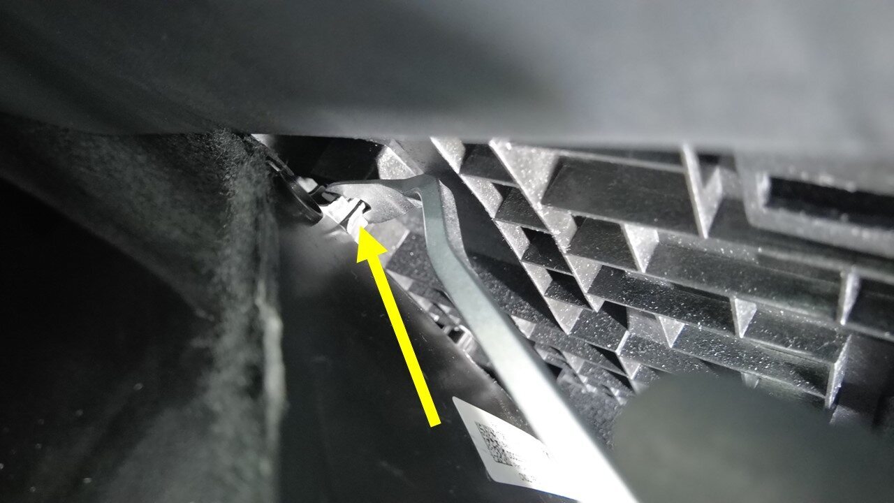 Note3x clips, 1x connector, Frunk safety switch, 3x guide tabs, Align 3x tabs then push forward to secure clips.