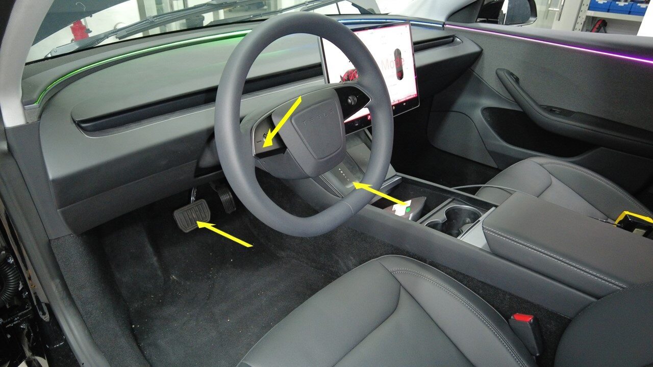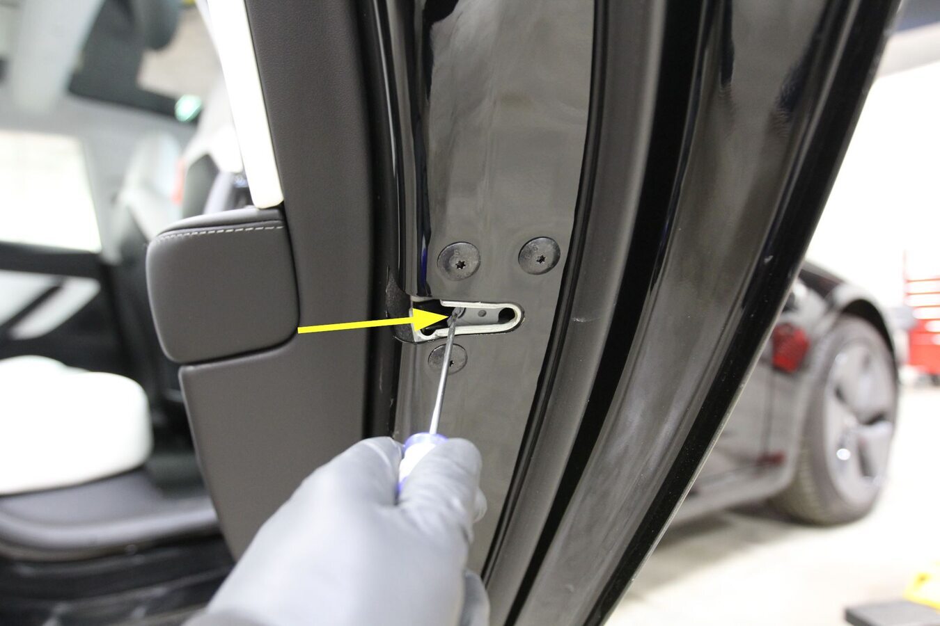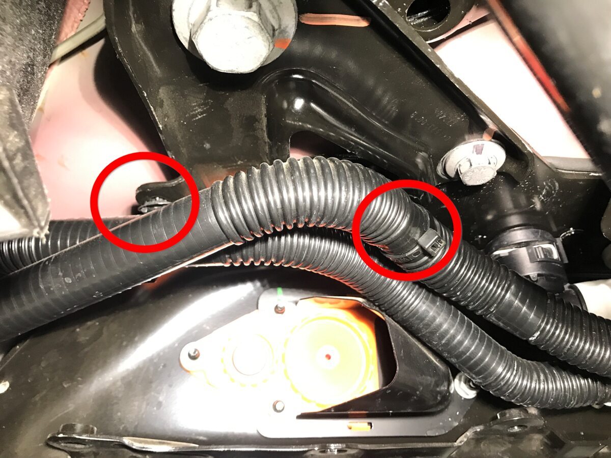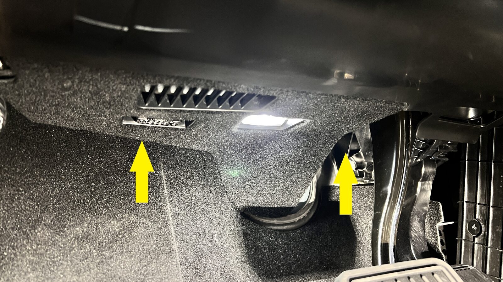 Note3x clips, 1x connector, Frunk safety switch, 3x guide tabs, Align 3x tabs then push forward to secure clips.