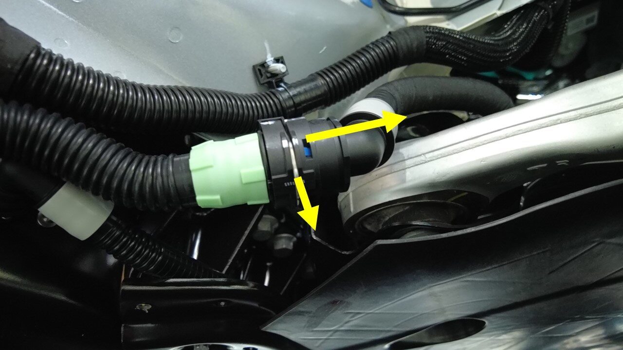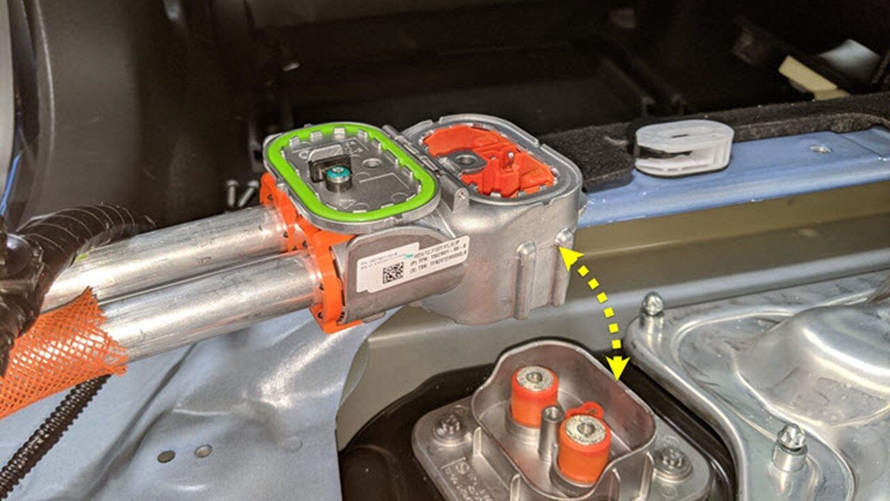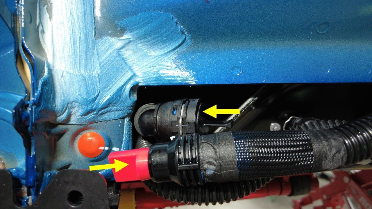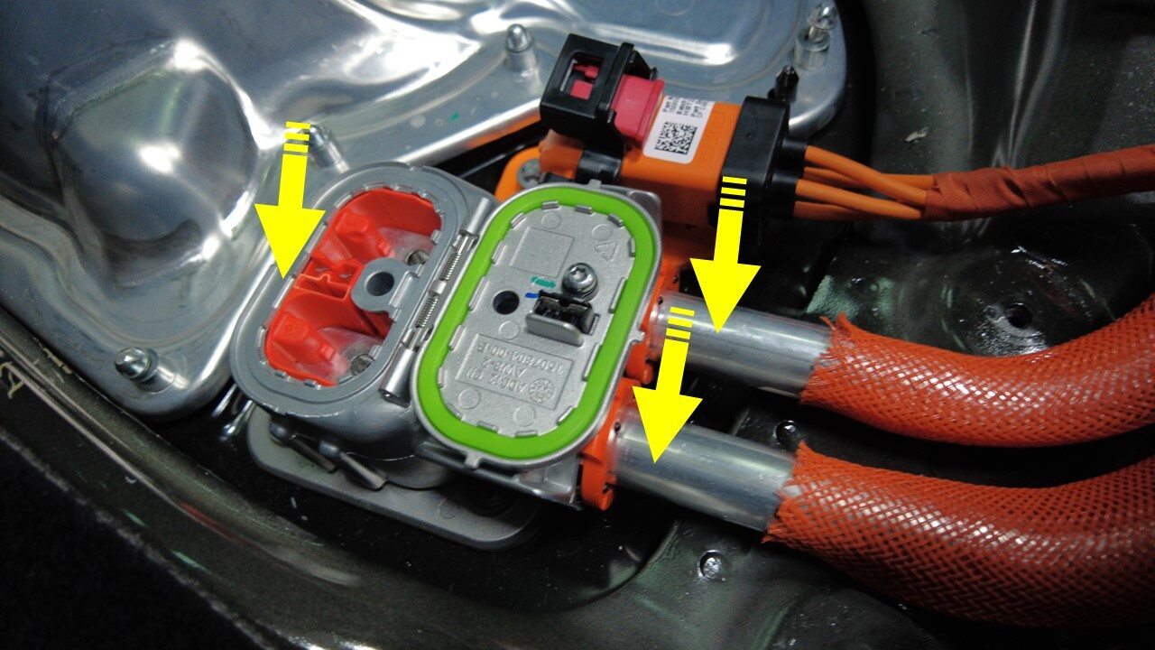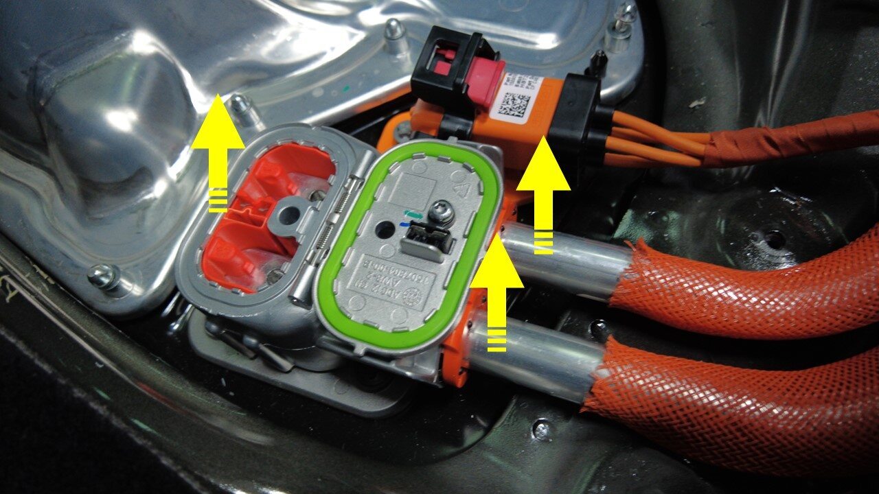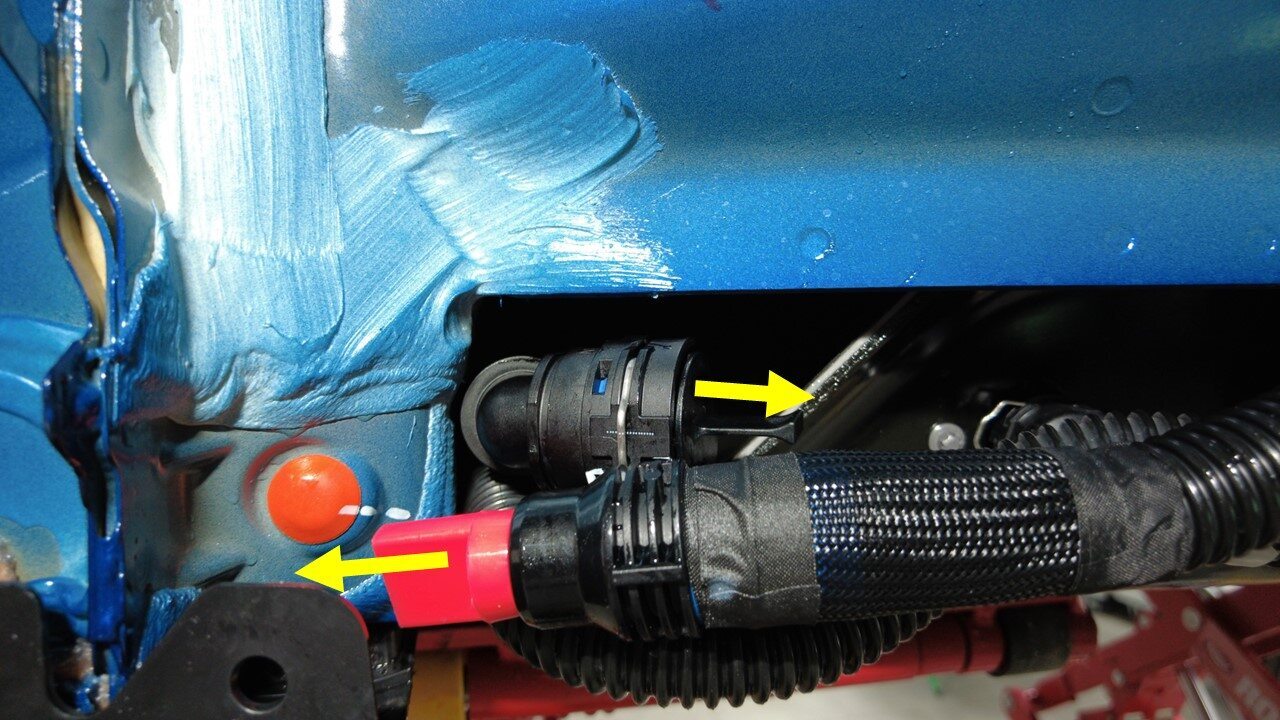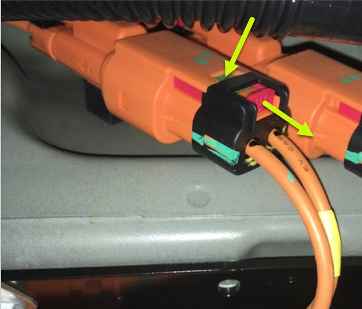 Note2x connectors, Secure FRL first, Seat LV battery connection and push black connector lock inwards to secure, Engage green locking tab when fully seated.