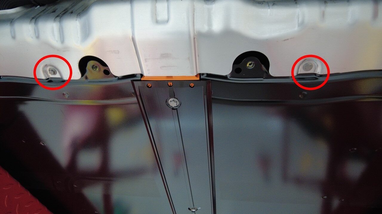 Note14x clips, Hold rear wall of frunk to keep from flexing while engaging front clips.