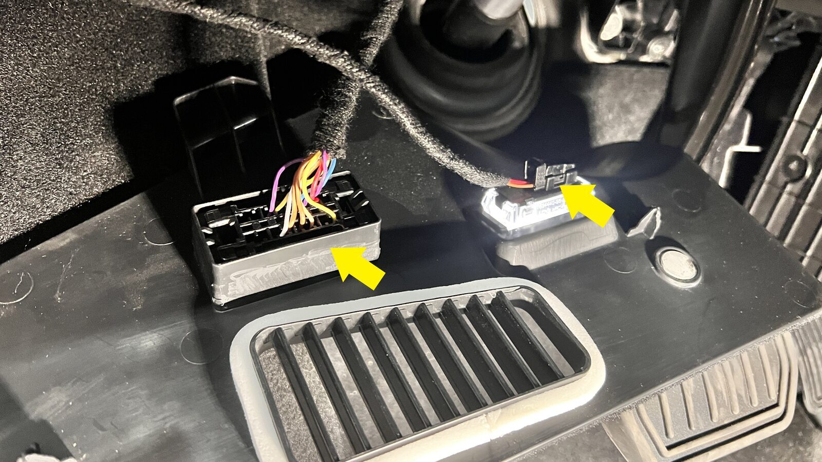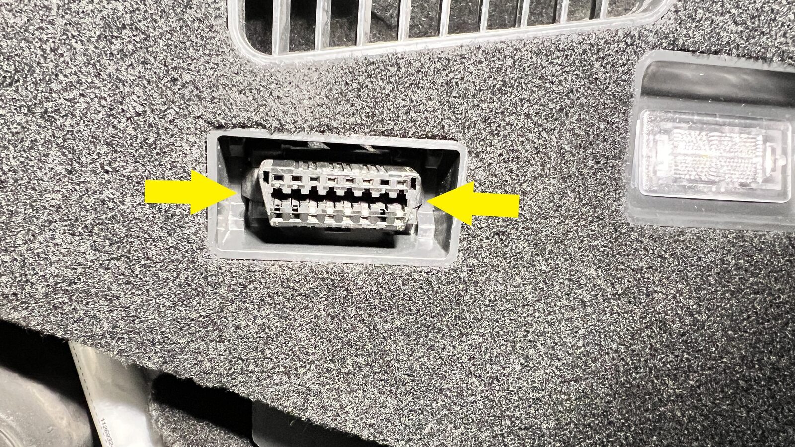 Note1x connector, 1x OBDII connector, Ensure tabs engage on OBDII connector.