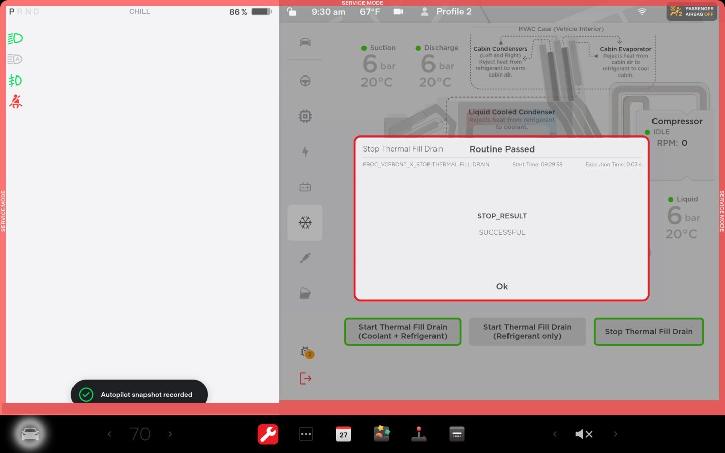 NoteWait until coolant pumps stop running (audible noise), Routine Passed will appear, but pumps will run for 10 minutes, If you start next another routine during this time, it will fail, Make sure vehicle is not in "Drive", Routine is still running despite the completed message, Idle speed = ~1500 RPM, Test will vary speeds from 3500-6500 RPM and actuate valves between SERIES and PARALLEL, Putting vehicle into "Drive" will stop this routine, If speeds hover at 7000 RPM, this indicates the pumps are air locked, perform a vacuum fill, Continue to add coolant and purge until the coolant level reaches between the NOM and MAX Lines on the bottle.