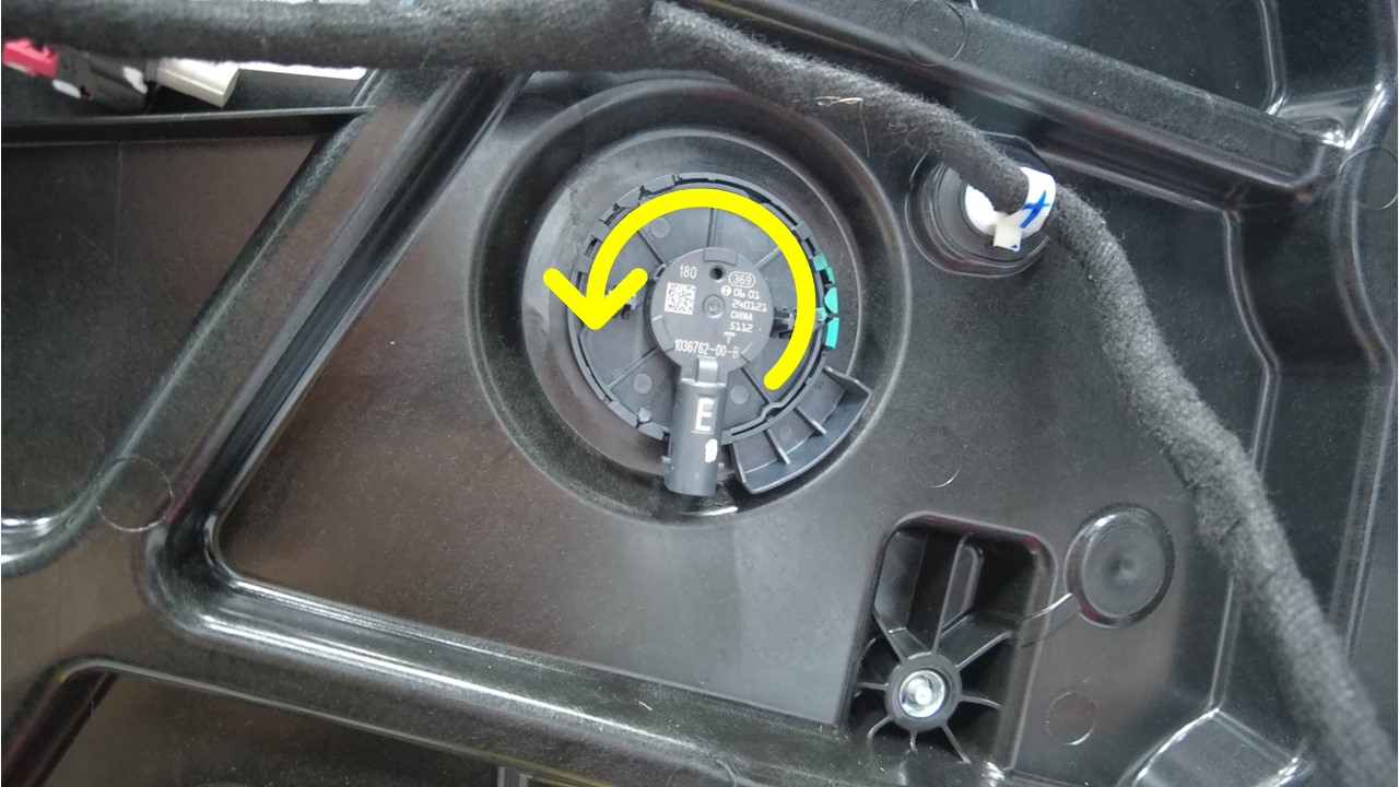 Twist the tabs counterclockwise and remove the rear door pressure sensor