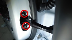 Nuts (x2) that attach the LH rear door check strap to the LH rear door |