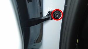 attaches the LH rear door check strap to the body.24 Nm (17.7 lbs-ft)NoteUnbolting the door check allows the door to swing freely beyond opening limits.TIpUse of the following tool(s) is recommended: