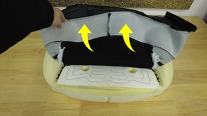Release the clips (x2) that attach the seat cushion to the seat