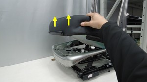 Fasten the clips (x2) that attach the seat cushion to the seat