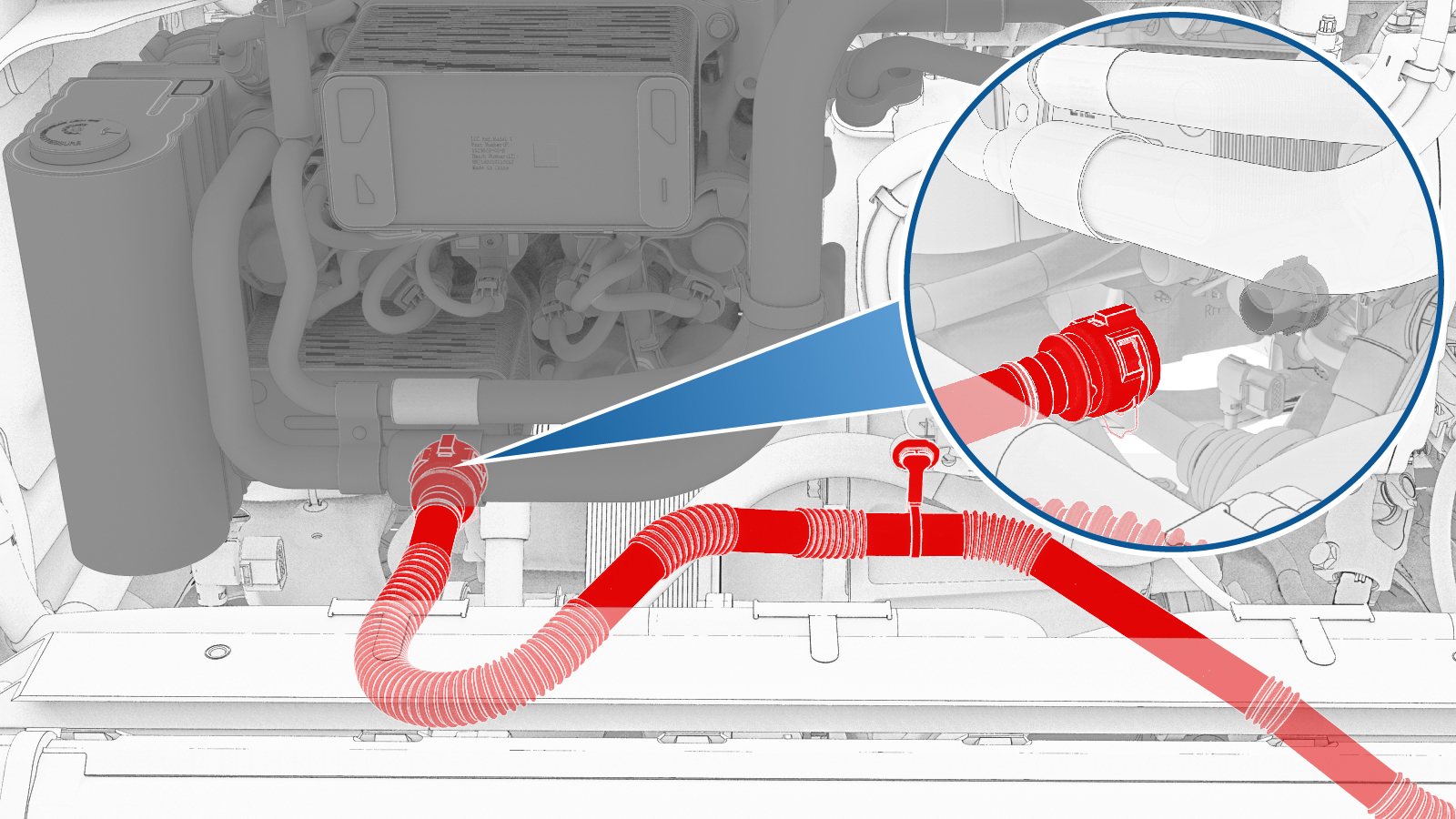 Release the clips (x2) that attach the radiator inlet hose to the vehicle.