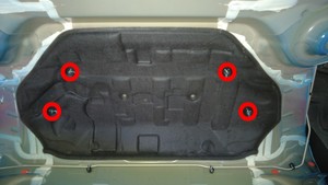 Release the clips (x4) that attach the rear motor bay noise absorber to the