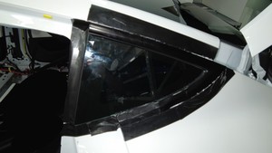 Break the locating posts on the interior side of the LH rear quarter body glass using diagonal cutters and a flat head screwdriver to assist with the removal of the glass.