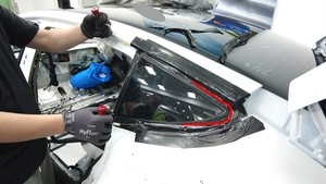 Apply masking tape to the rear around the LH rear quarter body glass to protect the body and paint.