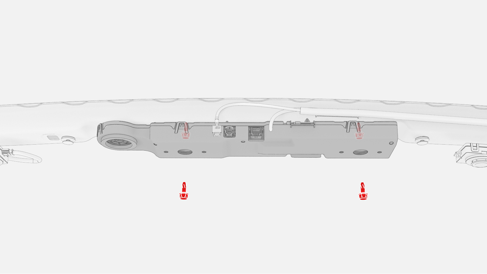 NoteIf needed, carefully insert inflatable air bags between the headliner and the body and inflate the bags to gain access to the Telematics control unit (TCU).CAUTIONTake care not damage the headliner.
