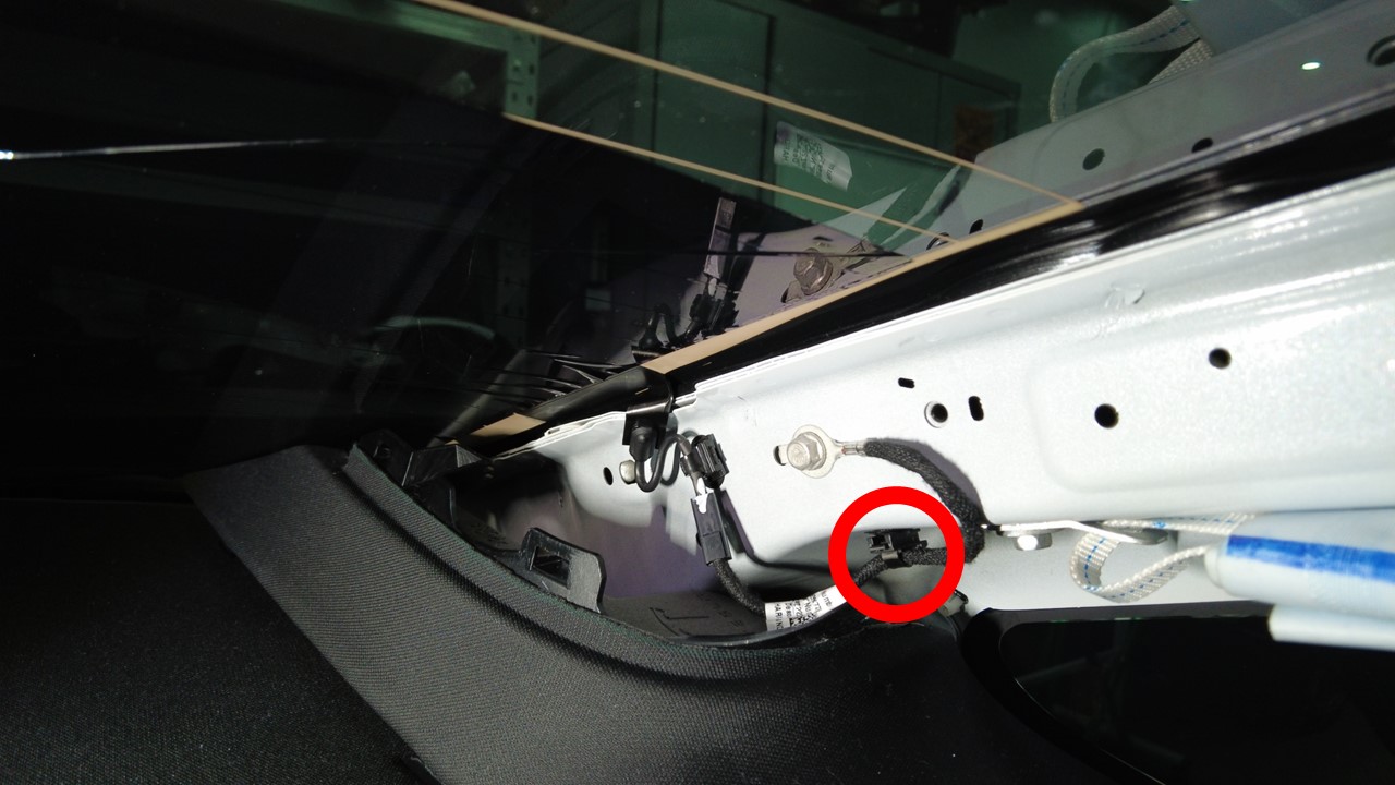 Disconnect the LH antenna filter harness connector from the LH C-pillar