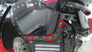 Bolts (x3) that attach the rear wing bracket to the vehicle |