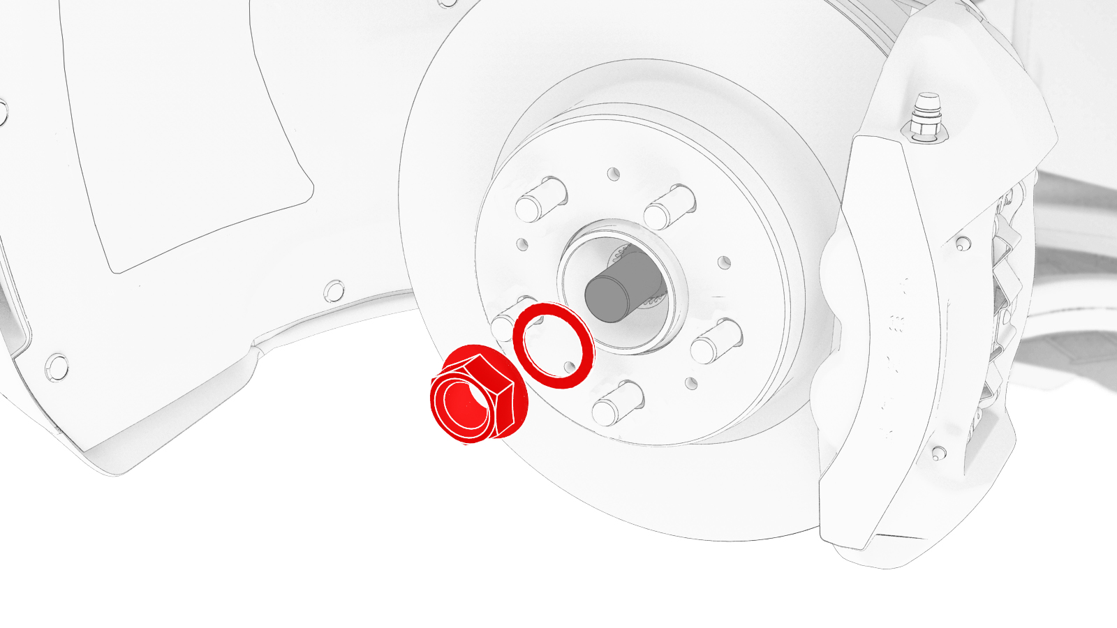 - Install the LH front wheel and hand tighten the wheel lug nuts.