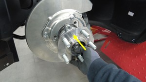 LH front hub prior to installation: Use a magnetic field viewing card to