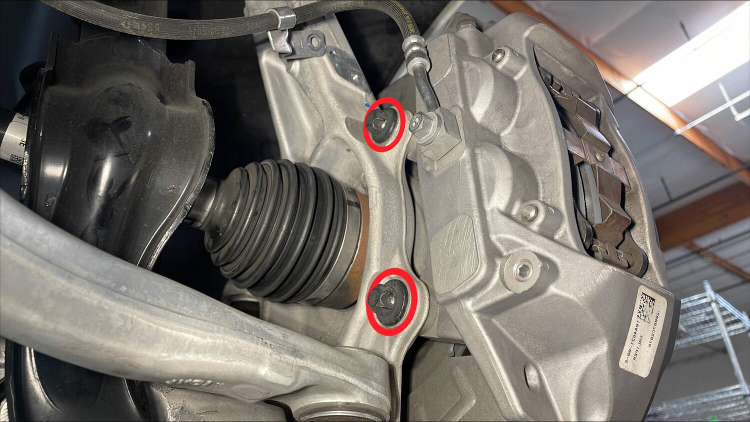 Bolts (x2) that attach the LH/RH front brake caliper to the LH/RH front knuckle |