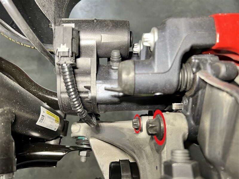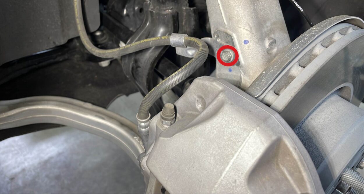 Bolt that attaches the LH/RH front brake hose bracket to the knuckle |