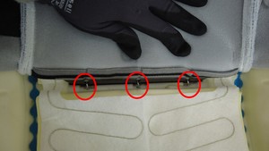 NotePush down on the foam to gain access to the rings.NoteRemove any excess hog ring pieces.