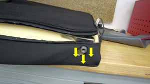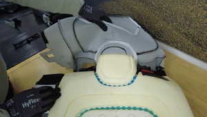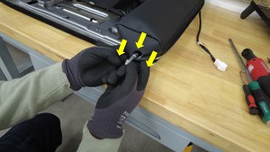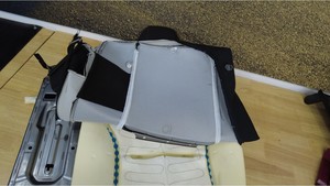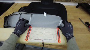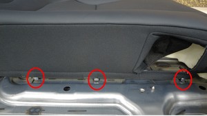 Use diagonal cutters to cut the hog rings (x3) at the center of the seat
