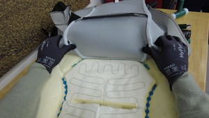NotePlace the hog ring into the hog ring pliers prior to installation.NotePush down on the foam to gain access to the rings.