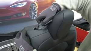 crimp new hog rings (1566544-00-A x3) to the LH 2nd row seat back upholstery