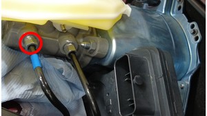- Flush the LH front caliper using the inner bleed valve until a noticeable reduction in air bubbles is observed.