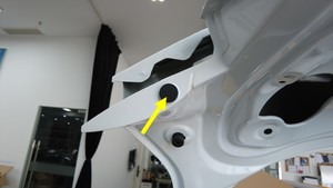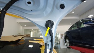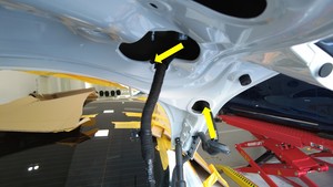 Feed the trunk harness through the access hole of the trunk lid, and then