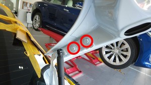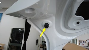 Bolt that attaches the trunk harness ground strap to the trunk lid |