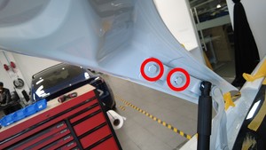 Install the clips (x2) that attach the trunk harness along the RH side of