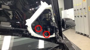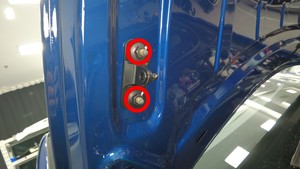 - If necessary, apply touch up paint matching the vehicle's body color to the LH and RH hood hinge studs/nuts.