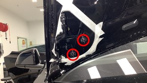 Install the clips (x2) that attach the LH and RH hood gas struts to the LH