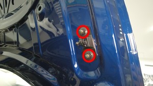 Remove the bolts (x2) that attach the hood striker to the hood.